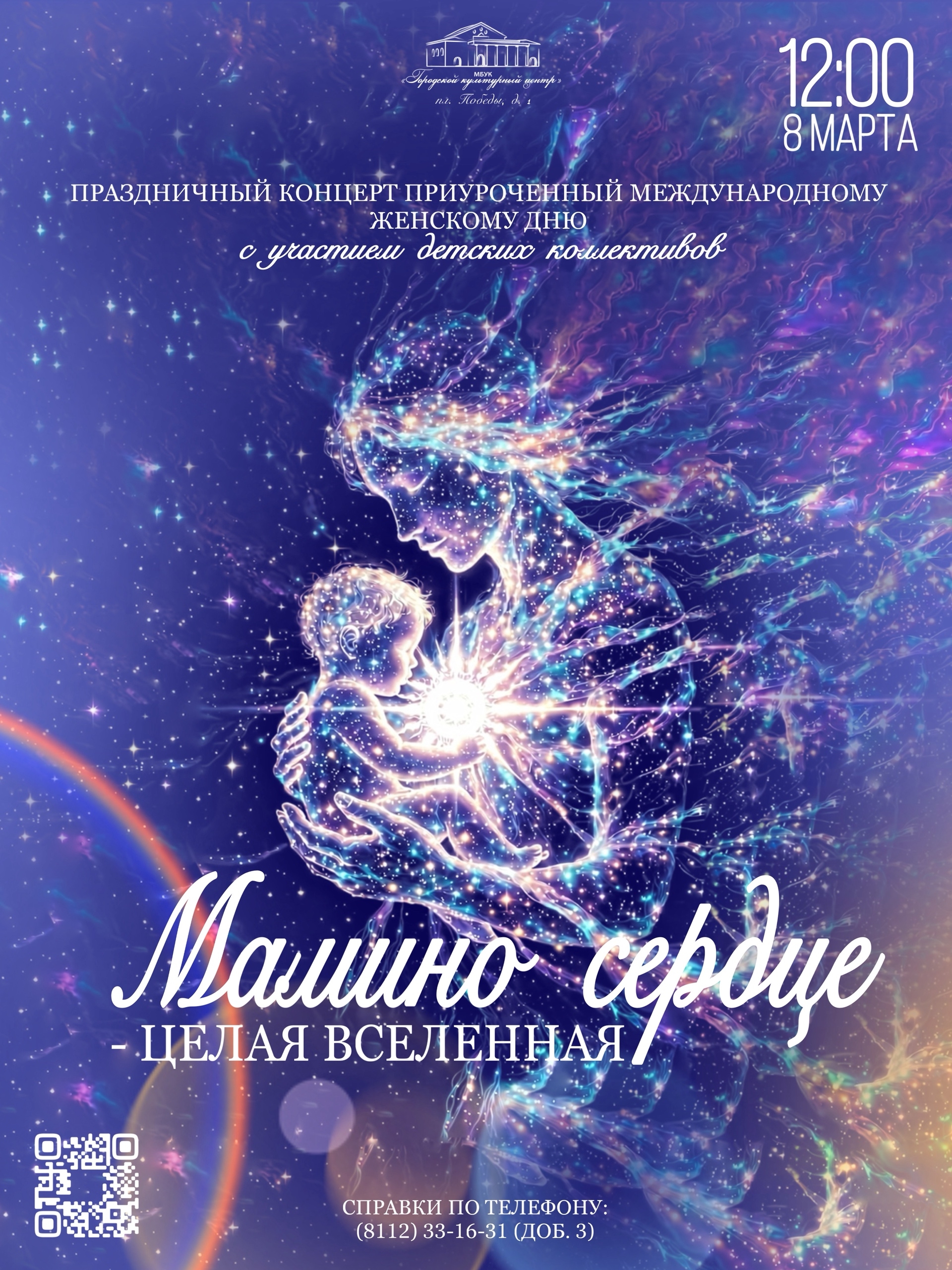 Мамино сердце - целая Вселенная! Приглашаем вас на праздничный концерт в исполнении детских творческих коллективов ГКЦ, посвящённый самому нежному празднику - 8 марта! 450-500 руб.